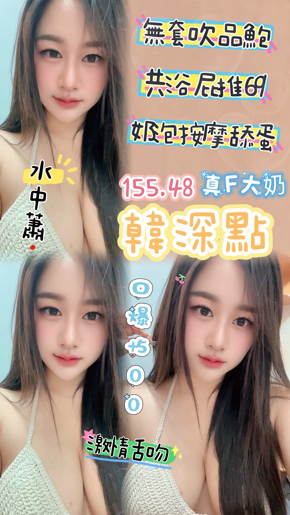 無套吹 戴套做 共浴 親親 品鮑 69 按摩 奶炮 舔蛋 胸推 屁推 情趣用品 角色扮演